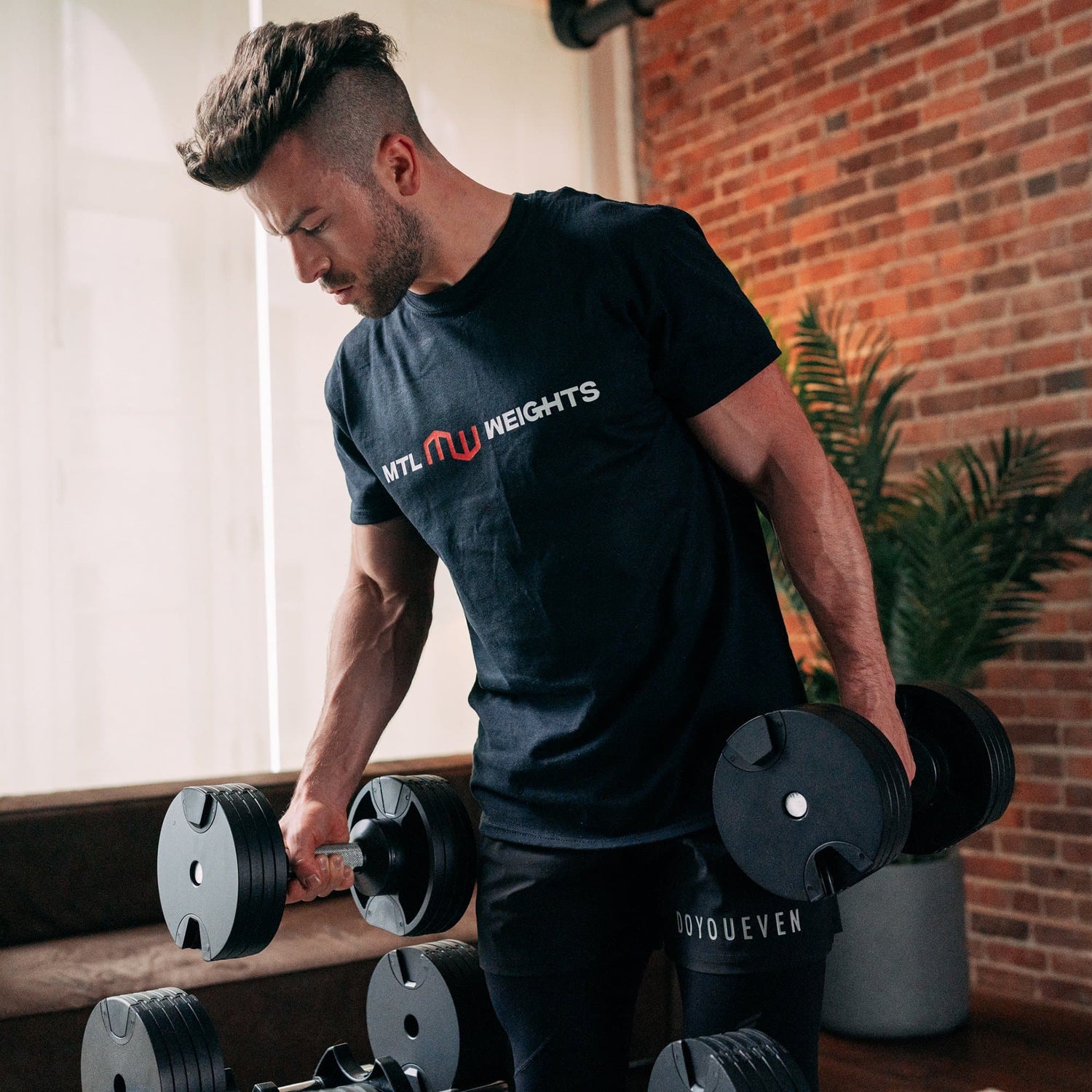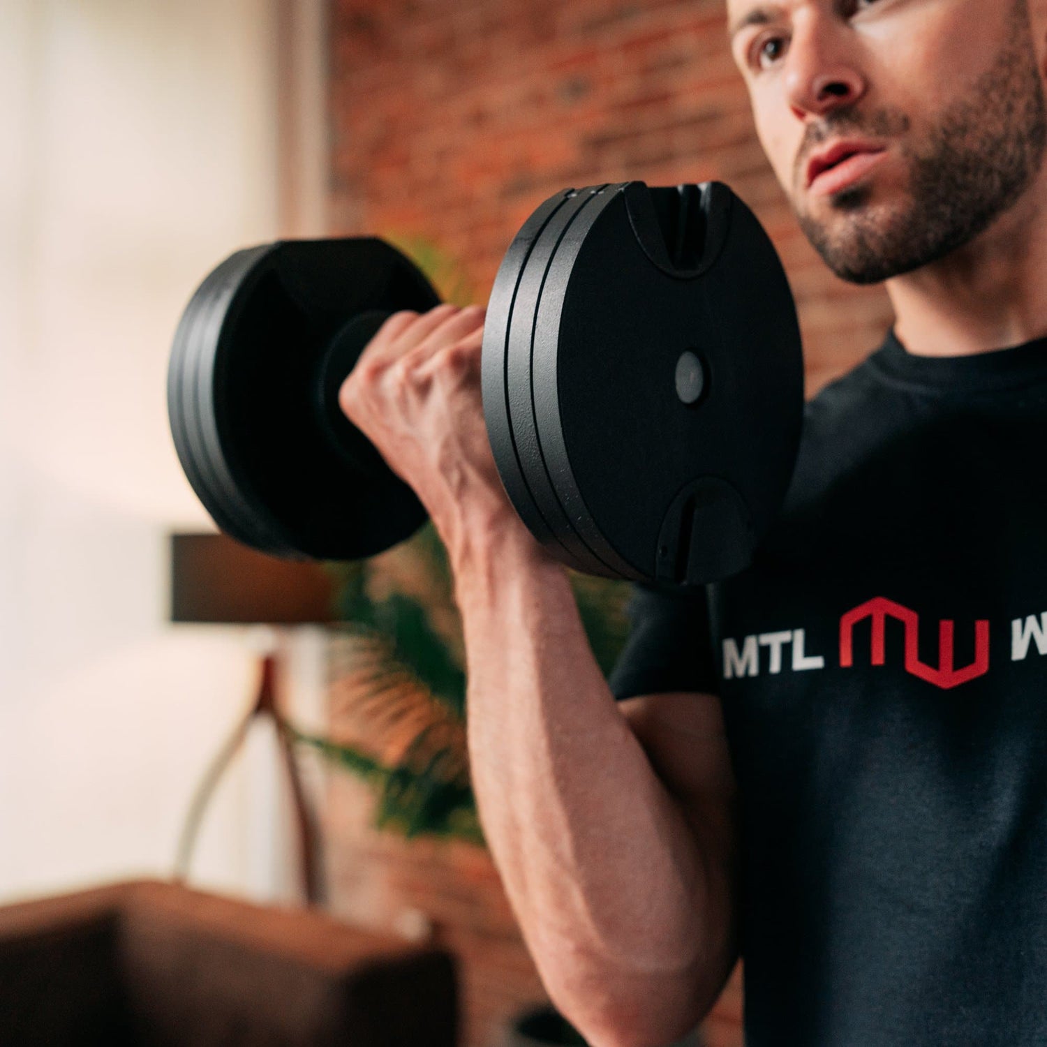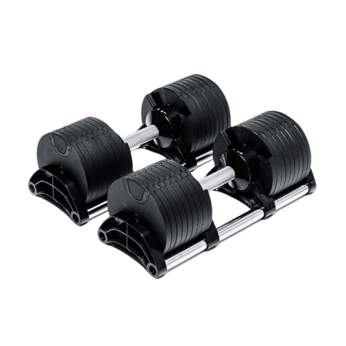 Our Nuo style Dumbbells that go from 5 to 70 or 7.5 to 90 lbs are the revolutionary piece of equipment you've been dreaming of having to power your next work outs. Now with 16 increments to choose from (of about 5 lbs each), you'll be able to do all of your next exercises with ease. With it's simple mechanism and it's refined look, this set of dumbbells will surely find it's place right in your home.