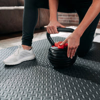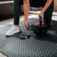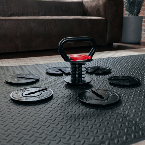 Our Adjustable Kettlebell will help you gain strength and endurance through vigorous workouts. It’s ideal for many exercises ranging from kettlebell swings to kettlebell pushups, all the way to exercises like kettlebell push press. As you gain strength and change exercises, you can quickly switch the weight of your kettlebell for smooth transitions. The cast iron weighted plates also ensure that your kettlebell can withstand your tough workouts for years to come. Say goodbye to cluttered workout spaces filled with different kettlebells – with our adjustable solution, you can seamlessly switch between 10, 15, 20, 25, 30, 35 and 40 lbs weights, catering to various exercise intensities and muscle groups.